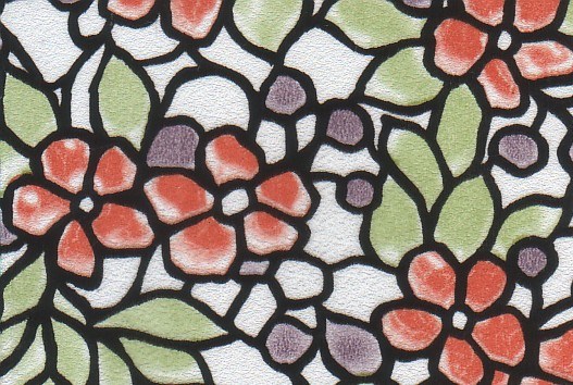 5008D D&B 45 см/8 м оранжево-зеленые цветы на белом