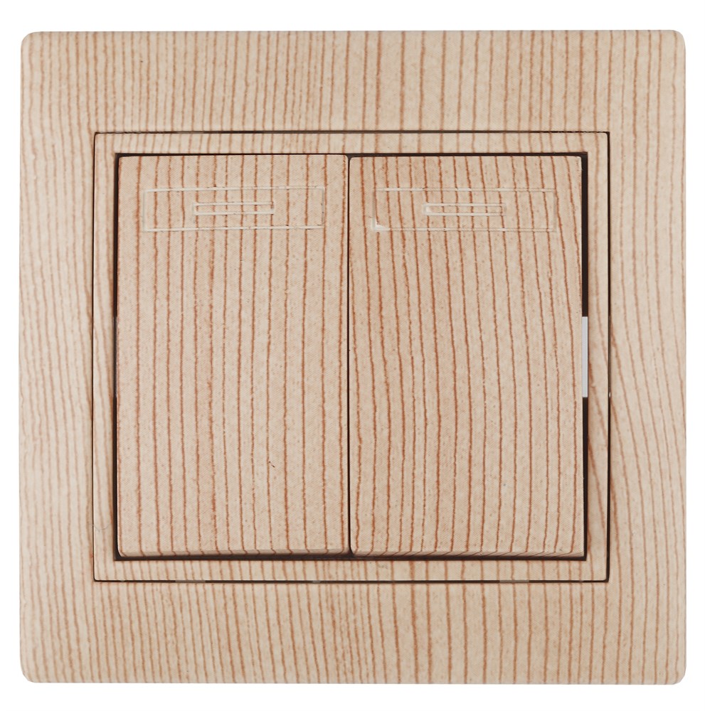 1-104-11 Intro Выключатель двойной, 10А-250В, IP20, СУ, Plano, сосна