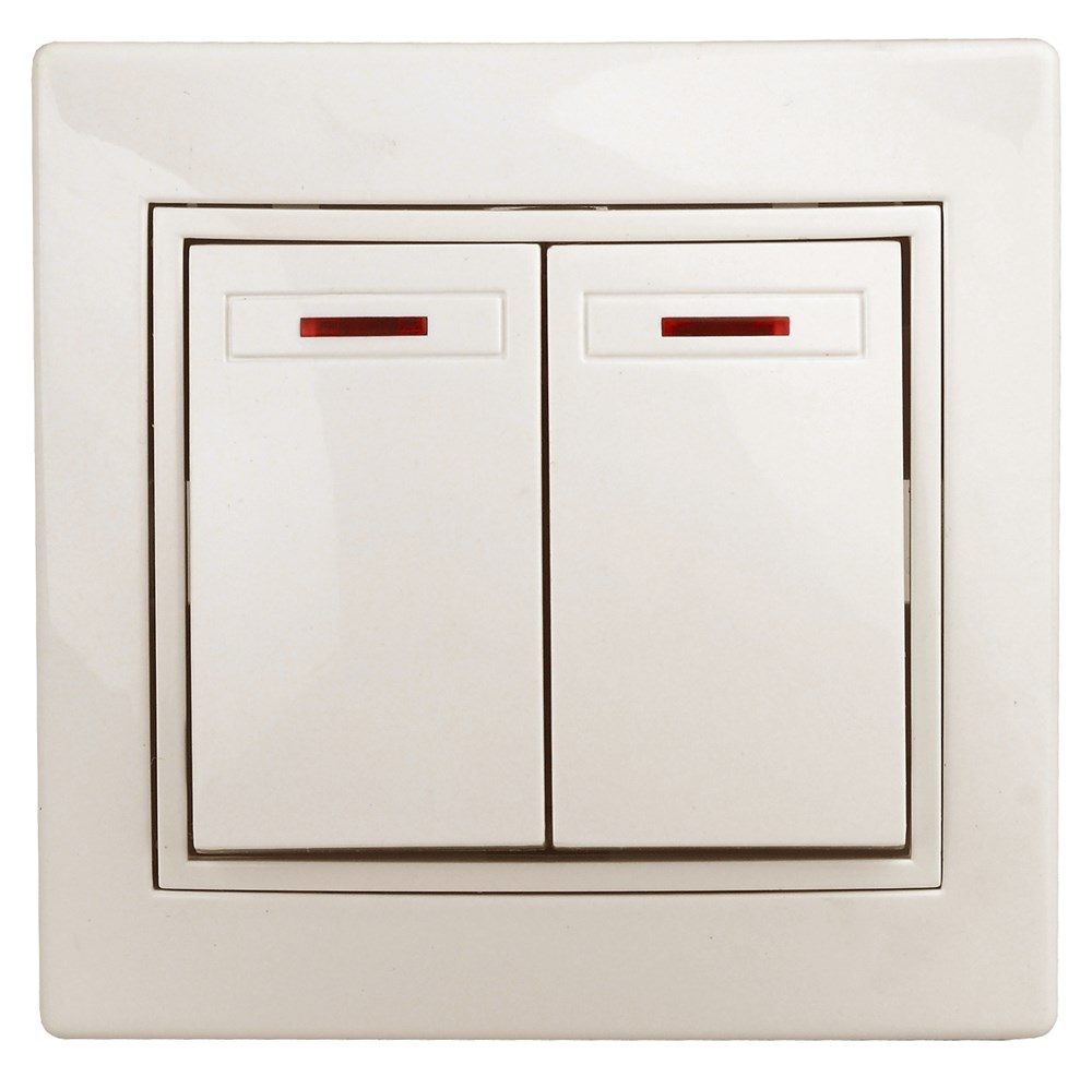 1-105-02 Intro Выключатель двойной с подсветкой,10А-250В,IP20,СУ,Plano,сл.кость(10/200)Под заказ