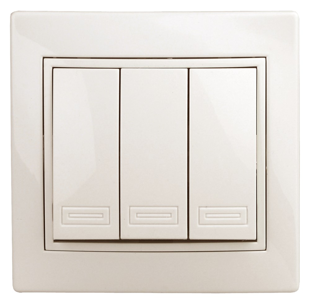1-106-02 Intro Выключатель тройной, 10А-250В, IP20, СУ, Plano, сл.кость (10/200/2400) Под заказ