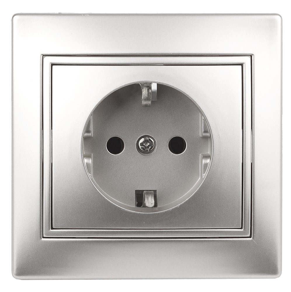 1-202-03 Intro Розетка 2P+E Schuko, 16А-250В, IP20, СУ, Plano, алюминий