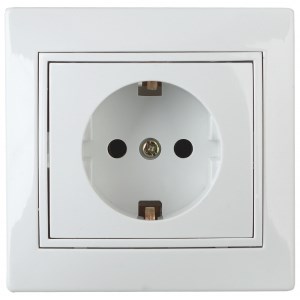 1-206-01 Intro Розетка 2Р+E Schuko со шторками, 16АХ-250В, СУ, Plano, белый (одноместная с заземлени