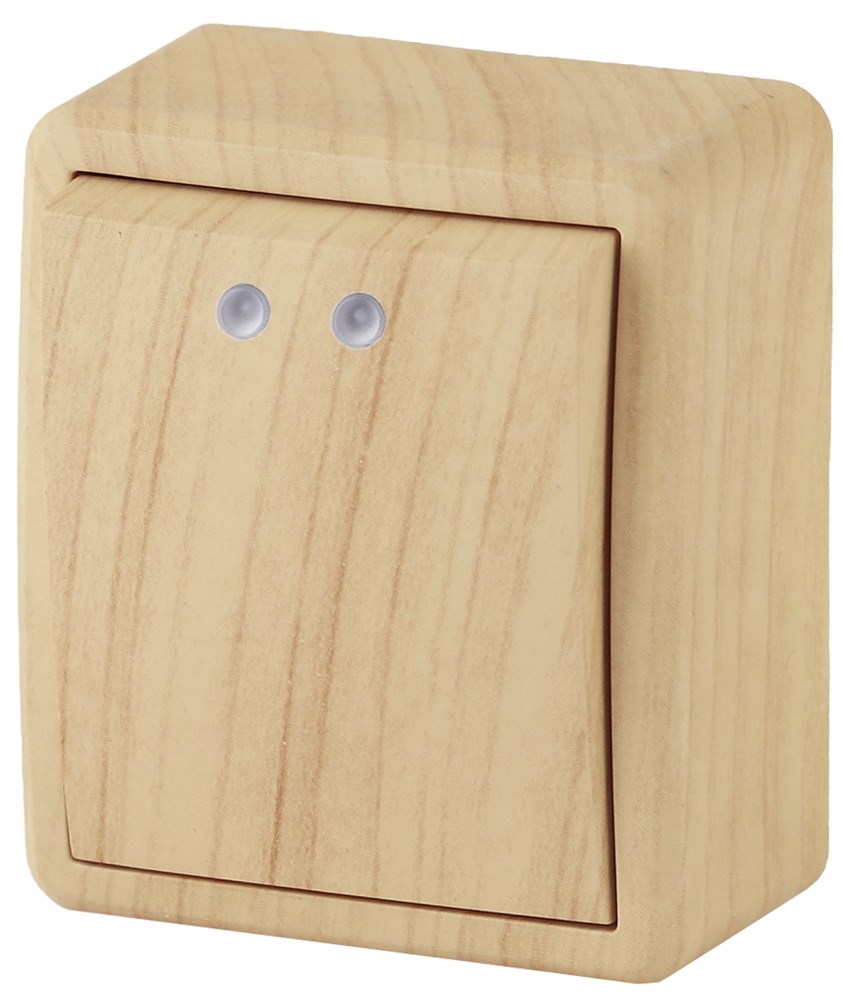 11-1202-11 ЭРА Выключатель с подсветкой,10АХ-250В, IP20, ОУ, Эра Эксперт, сосна