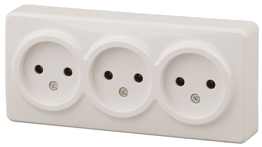 11-2207-02 ЭРА Розетка 3х2P, 16A-250В, IP20, ОУ, Эра Эксперт, сл.кость (8/80/1600)