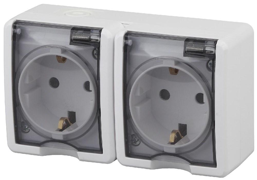 11-2404-01 ЭРА Розетка 2х2P+E IP54, шторки.16А-250В, ОУ, Эра Эксперт, белый (двухместная с заз)
