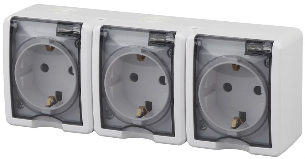 Розетка 3х2P+E IP54, шторки, 16АХ-250В, ОУ, Эра Эксперт, белый