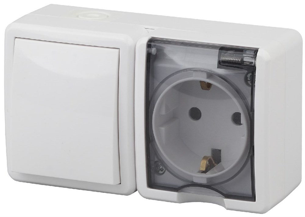 Блок розетка+выключатель IP54, 16АХ(10AX)-250В, ОУ, Эра Эксперт, белый