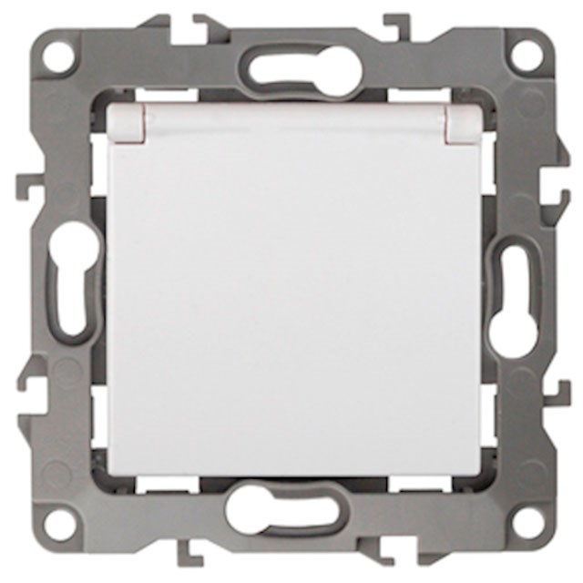Розетка 2P+E Schuko со шторками с крышкой, 16АХ-250В, Эра12, белый