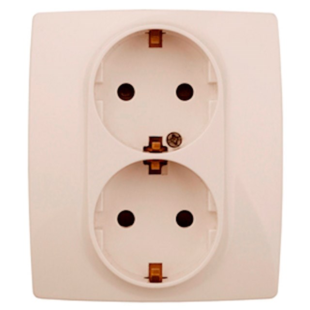 Розетка 2X2P+E Schuko со шторками, 16АХ-250В, Эра12, слоновая кость