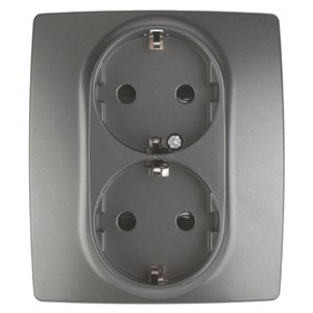 12-2104-12 ЭРА Розетка 2X2P+E Schuko со шторками,16А-250В, IP 20, Эра12, графит (двухместная с заз