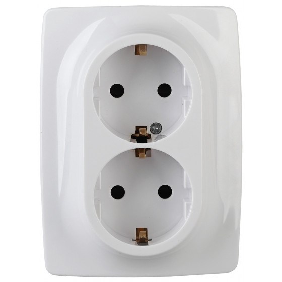 Розетка двойная с заземлением серии Эра 12 скрытой установки механизм цвет белый 12-2106-01. Номинальные характеристики 16А 250В . Сделана из поликарбоната, оснащёна автоматическими клеммами для быстрй и надёжной фиксации жил кабеля в механиме. Парные клеммы обеспечивают соединение шлейфом. Монтаж в подрозетник производится и на лапки, и на винты. Рамки приобретаются отдельно