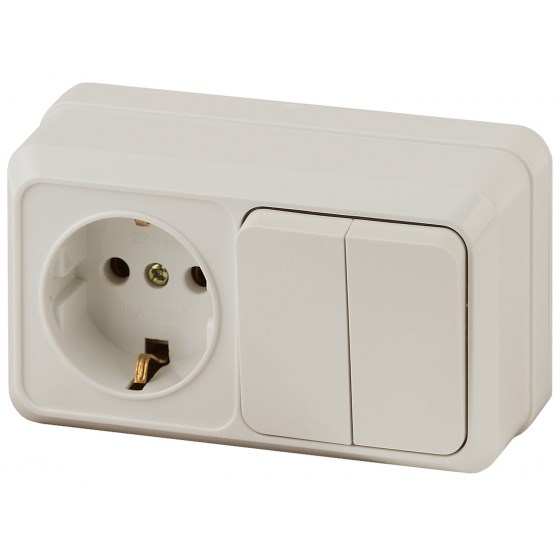 Блок розетка+выкл. двойной гориз. 10(16)А-250В, IP20, ОУ, Quadro, сл.кость