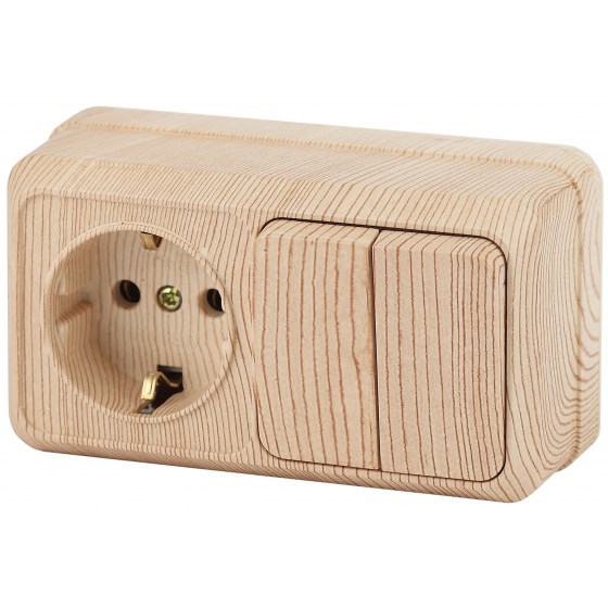 2-702-11 Intro Блок розетка+выкл.двойной гориз., 10(16)А-250В, IP20, ОУ, Quadro, сосна