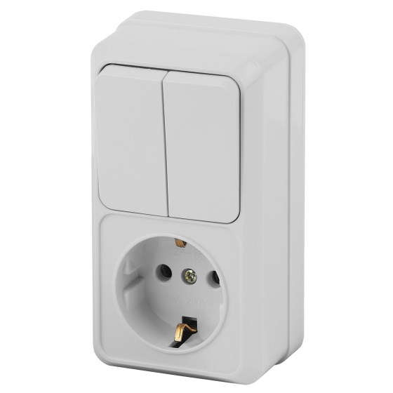 2-706-01 Intro Блок розетка+выкл. двойной верт., 10(16)А-250В, IP20, ОУ, Quadro, белый