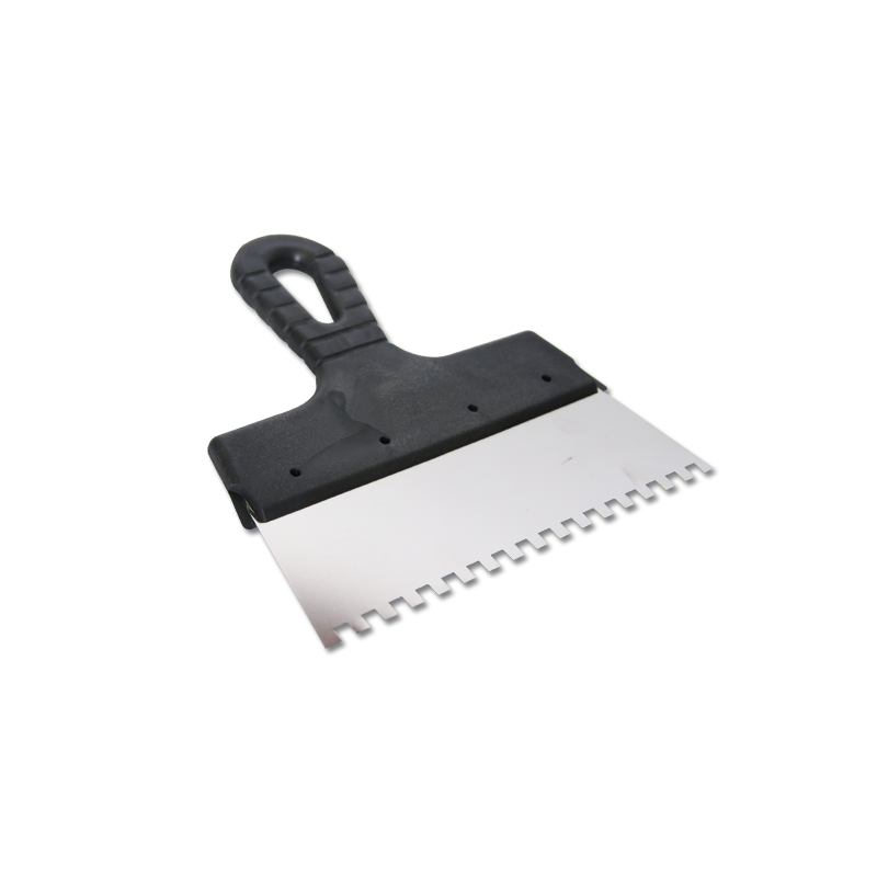 Полотно шпателя изготовлено из нержавеющей стали. Оснащен эргономичной пластмассовой ручкой. Шпатель предназначен для нанесения и выравнивания клеевых и строительных смесей при укладке плитки на поверхностях большой площади. Размер инструмента 200 мм, зуб 6 х 6 мм.