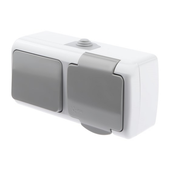 5-701-03 Intro Atlantic Блок розетка с выключателем одноклавишным 2P+E, 10А-250В, открытой установки