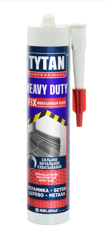 Монтажный клей TYTAN PROFESSIONAL HEAVY DUTY каучуковый 310мл 62963 используется в строительстве и ремонте для надежного крепления тяжелых конструкций.