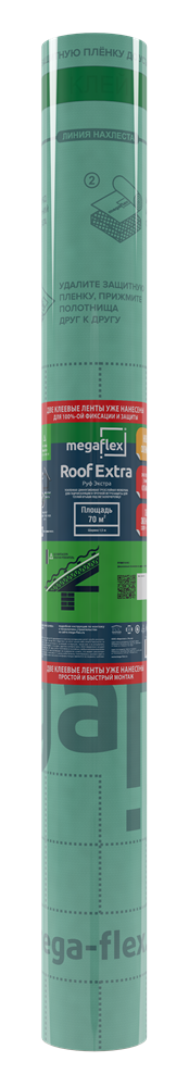 Megaflex Roof Extra (ш 1.5.70м2)влаго-ветрозащит. диффузионная мембрана с двумя клеевыми под ЗАКАЗ