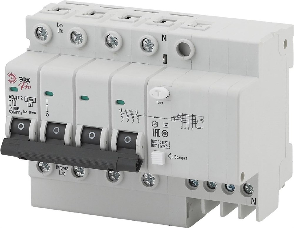 Авт.выкл.диф.тока АВДТ2 ЭРА ProNO-902-142 C10А 30мА 3P+N тип AC Под заказ