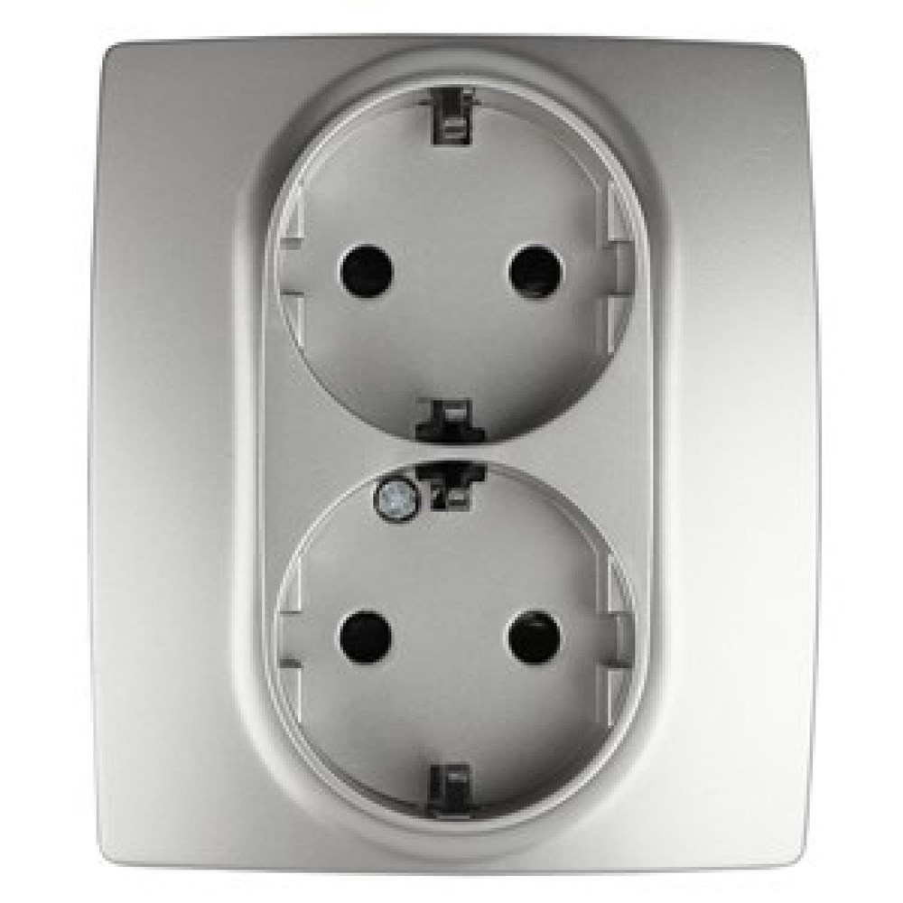 12-2104-03 ЭРА Розетка 2X2P+E Schuko со шторками,16A-250В, IP20, Эра12, алюминий