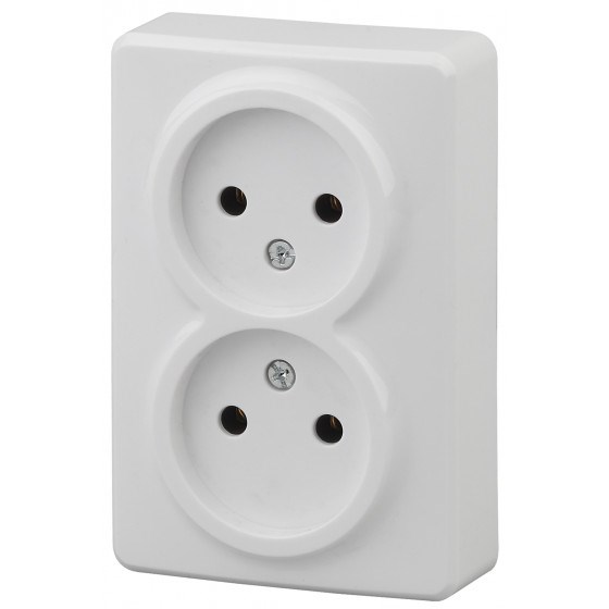 11-2202-01 ЭРА Розетка 2х2P,16АХ-250В, ОУ, Эра Эксперт, белый (двухместная)