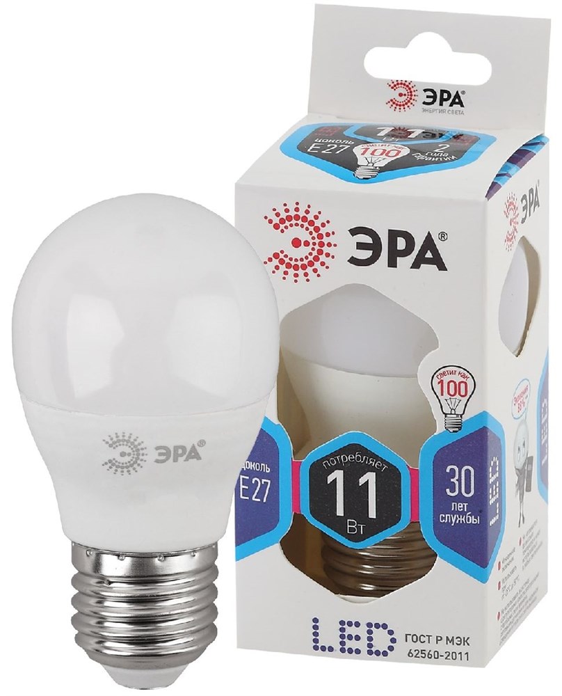 Лампа светодиодная ЭРА LED smd P45-11w-840-E27 4000К