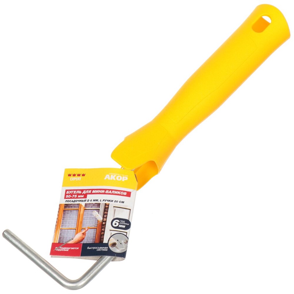 Бюгель для мини- валика 50-75 мм, d-6 мм L20 пластиковая ручка,желтый АКОР (100шт/уп)626 20 075