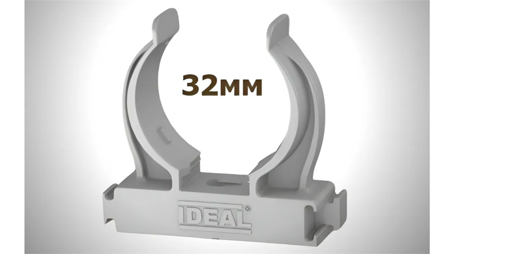 Крепеж-клипса для трубы универсальный Ф32 "Идеал", 002 Светло-серый (20шт/уп)