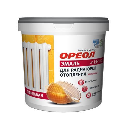 Эмаль акриловая "Ореол" для радиаторов отопления термостойкая глянцевая,белая 1,1 кг (8шт)
