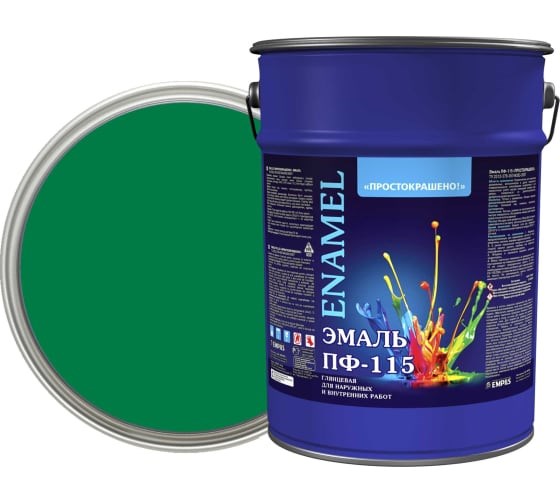 Эмаль Простокрашено! ПФ-115 зеленая, 6 кг 8834 предназначена для окраски деревянных, металлических и других поверхностей, подвергающихся атмосферным воздействиям, а также для работ внутри помещений (оконные рамы, двери, древесно-волокнистые, древесностружечные плиты и т.п.).