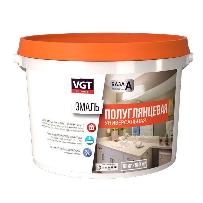 Эмаль VGT ВД-АК-1179 унив.полуглян.супербел. база А, 10кг (4шт)