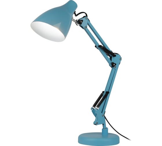 Настольный светильник ЭРА N-123-E27-40W-LBU Е27 с основанием, голубой Б0052755 трендового дизайна с классической конструкцией может использоваться с разными источниками света - лампой накаливания, компактной люминесцентной лампой (КЛЛ) или светодиодной (LED) лампой. Выключатель на проводе. Устойчивое основание. Высота плафона регулируется двухсекционной сгибающейся стойкой, направление света - поворотом и наклоном плафона в любом направлении.