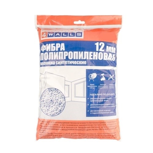 Фибра полипропиленовая, размер 12мм 10 кг, 4WALLS