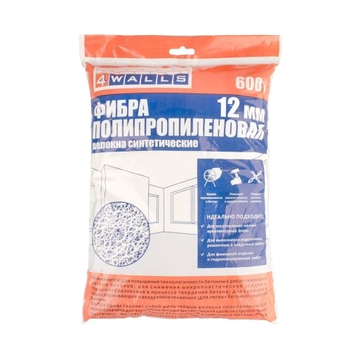 Фибра полипропиленовая, размер 12мм 600 гр/12 шт, 4WALLS