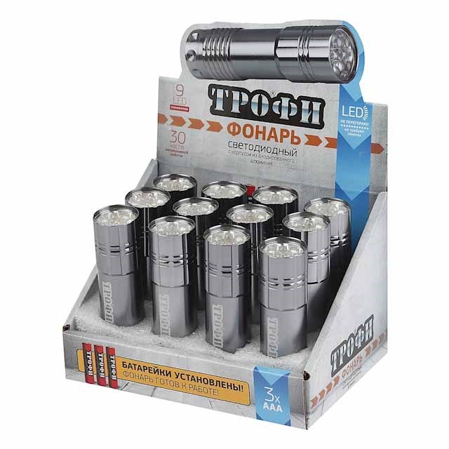 Фонарь TM9-Box12 Трофи 9xLED, алюм, 3хААА, в комплекте, промо-бокс