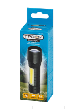 Фонарь UA-101 Трофи аккум.3Вт LED + 3Вт COB оптический Zoom 3 режима