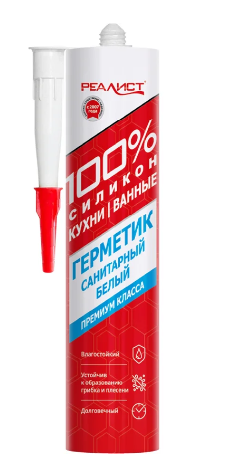 Высококачественный герметик REALIST PRO с системой отверждения ацетокси, с повышенной стойкостью к воздействию влаги, грибка и плесени, разработан с учетом требований профессионалов.