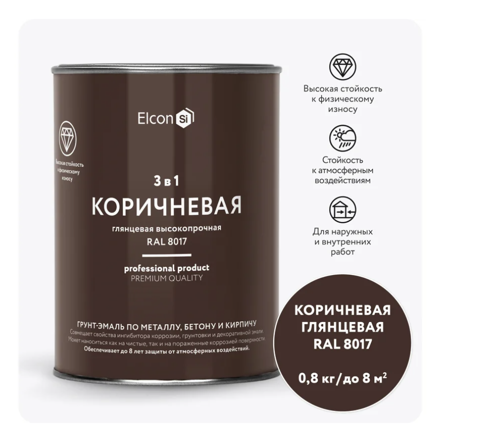Грунт-эмаль по ржавчине Elcon 3 в 1 глянцевая коричневая RAL 8017 0,8 кг (12шт)