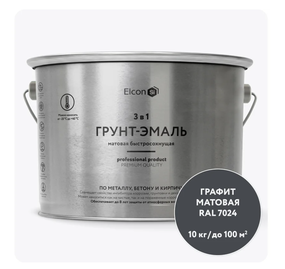 Грунт-эмаль по ржавчине Elcon 3 в 1 матовая графит RAL 7024 10 кг Под заказ