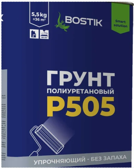 Bostik P505 готовит основание к укладке различных напольных покрытий при использовании клеев на основе полиуретана и MS-полимеров. Обеспечивает сцепление с поверхностями с остатками старых, прочно прилипших клеевых материалов. P505 также используется в качестве грунтовочного слоя на кровлях и крышах из бетона и старых битумных покрытий при ремонте и гидроизоляции материалами Акваблокер, Акваблокер Ликвид, Ватерстоп и СтопВода.