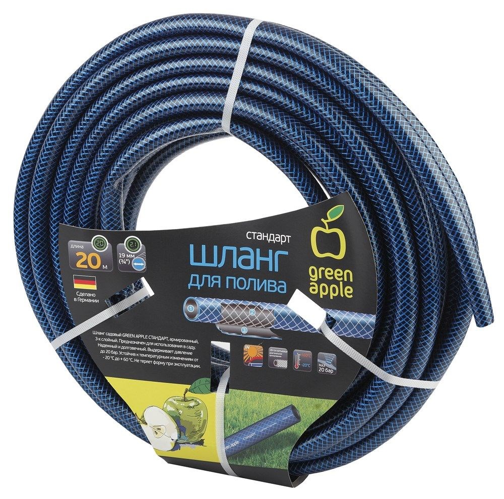 Шланг для полива GREEN APPLE СТАНДАРТрабочая температура +60/-20. защита от УФ. Германия. Давление на разрыв 20 бар. 18-ти нитьевое диагональное армирование. 19мм (3/4") х 20м