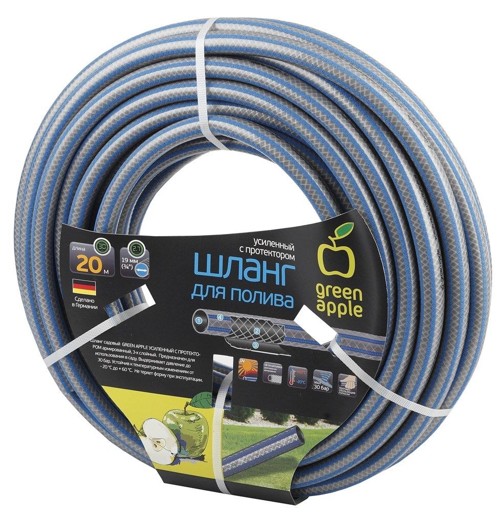 Шланг для полива GREEN APPLE УСИЛЕННЫЙ С ПРОТЕКТОРОМ рабочая температура +60/-20. защита от УФ. Германия. Давление на разрыв 30 бар. 18-ти нитьевое диагональное армирование протектором. 19мм (3/4") х 20м