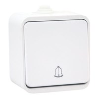 Кнопка звонка с символом "UNIVersal" серия "Клио", IP44, о/у, 10А, 220В, белая (еврослот)