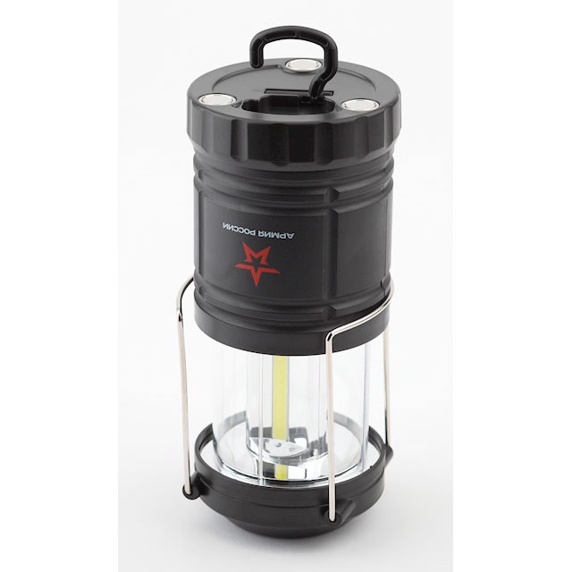 Фонарь кемпинговый светодиодный АРМИЯ РОССИИ KB-502 на батарейках складной мощный светильник с магнитом и крючком черный ЭРА Армия России ЗАРЯ - кемпинговый светодиодный фонарь-трансформер, изготовленный из экологичного и сверхлёгкого пластика. Три в одном: 1. универсальный фонарь с ручками - удобно освещать дорогу; 2. устойчивый светильник, который можно поставить на столе для получения света и создания уютной атмосферы на привале; 3. светильник по типу уличного фонаря - подвешивается к разным типам поверхностей при помощи магнита или крючка.Светодиодная часть за считанные секунды "прячется" в корпус. Это защищает осветительные элементы от ударов и экономит место в рюкзаке. Яркий и плотный свет обеспечивают светодиоды СОВ ("мультикристалл на плате"). Технология, широко применяемая в промышленном освещении, теперь адаптирована для универсальных целей. ЭРА получила уникальный по качеству свет, который при своей повышенной яркости является комфортным для глаз. Дальность освещения - 13 метров