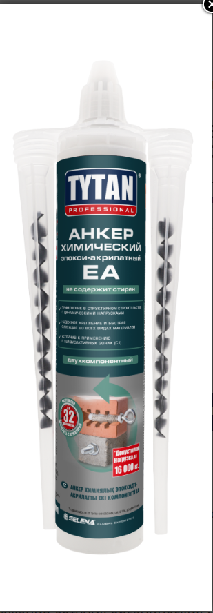 Химический анкер TYTAN EA эпокси-акрилатный двухкомпонентный (без стирола) 300мл (6шт) серый
