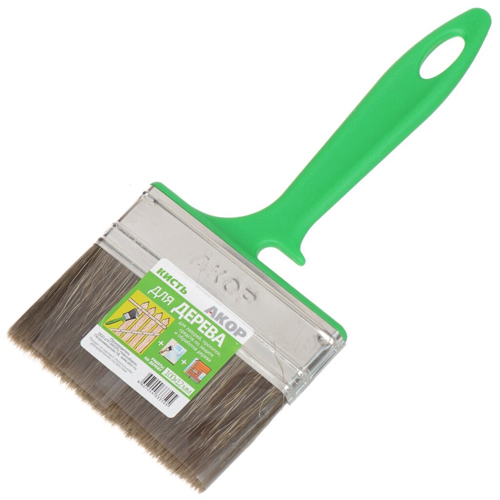 Кисть плоская 100мм нат. щетина с пласт. ручкой АКОР (180шт/уп)"Работы по дереву" 174 12 100