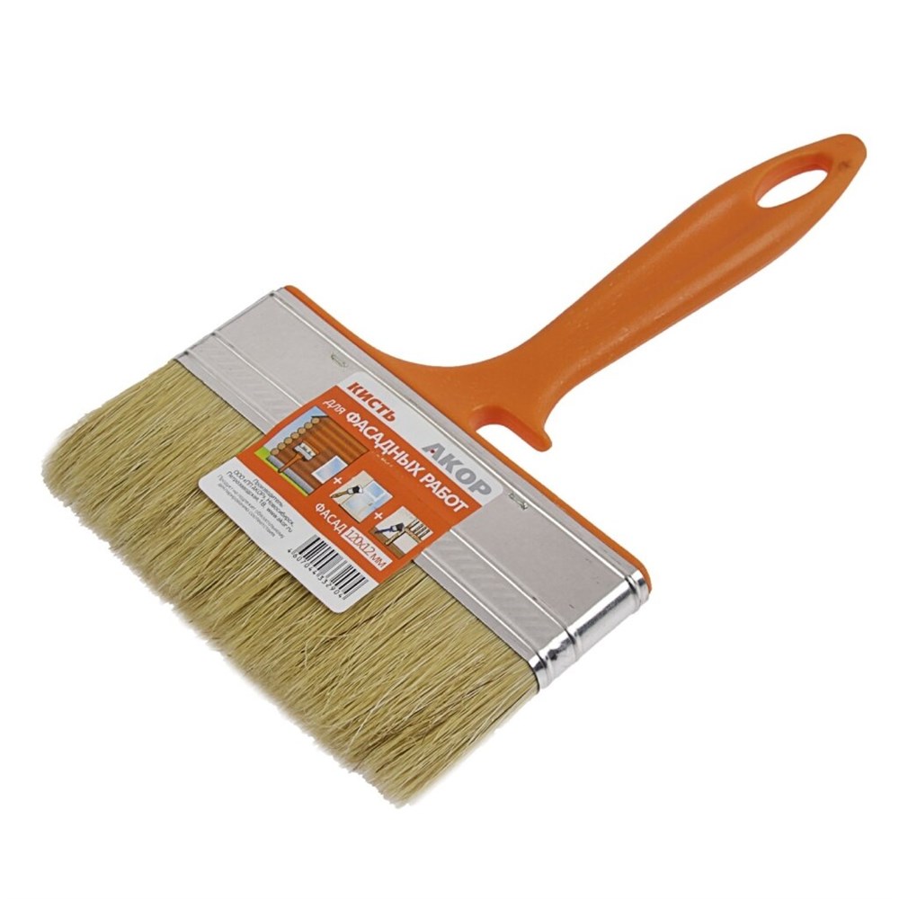 Кисть плоская 120мм нат. щетина с пласт. ручкой АКОР (100шт/уп) "Фасад" 175 12 120
