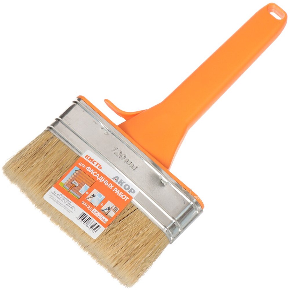 Кисть плоская 120мм нат. щетина с пласт. ручкой АКОР (70шт/уп) "Фасад" 175 25 120