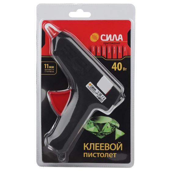 Клеевой пистолет СИЛА SGG40-01 40Bт под стержень 11мм (в комл. 11мм х 7cм 2 шт.) (24/48/384)