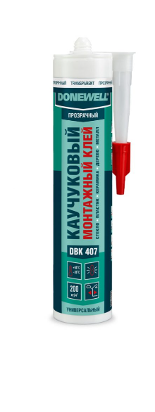Прозрачный каучуковый клей «жидкие гвозди» DONEWELL® DBK-407 существенно ускоряет отделочные работы, экономичен и прост в использовании. Может наноситься при температуре не ниже +5°С.